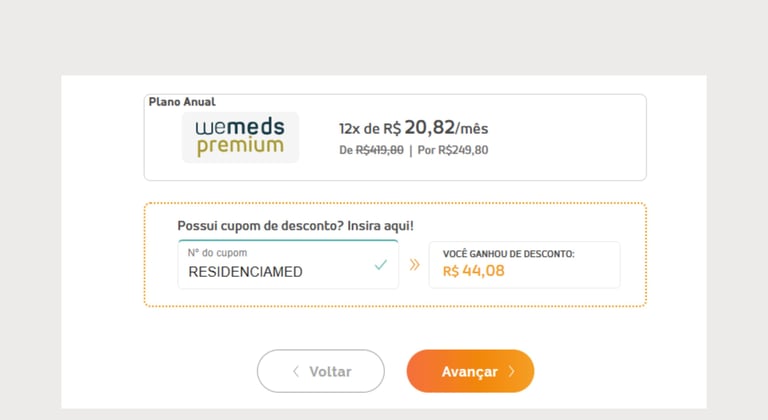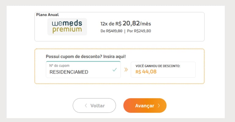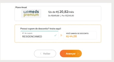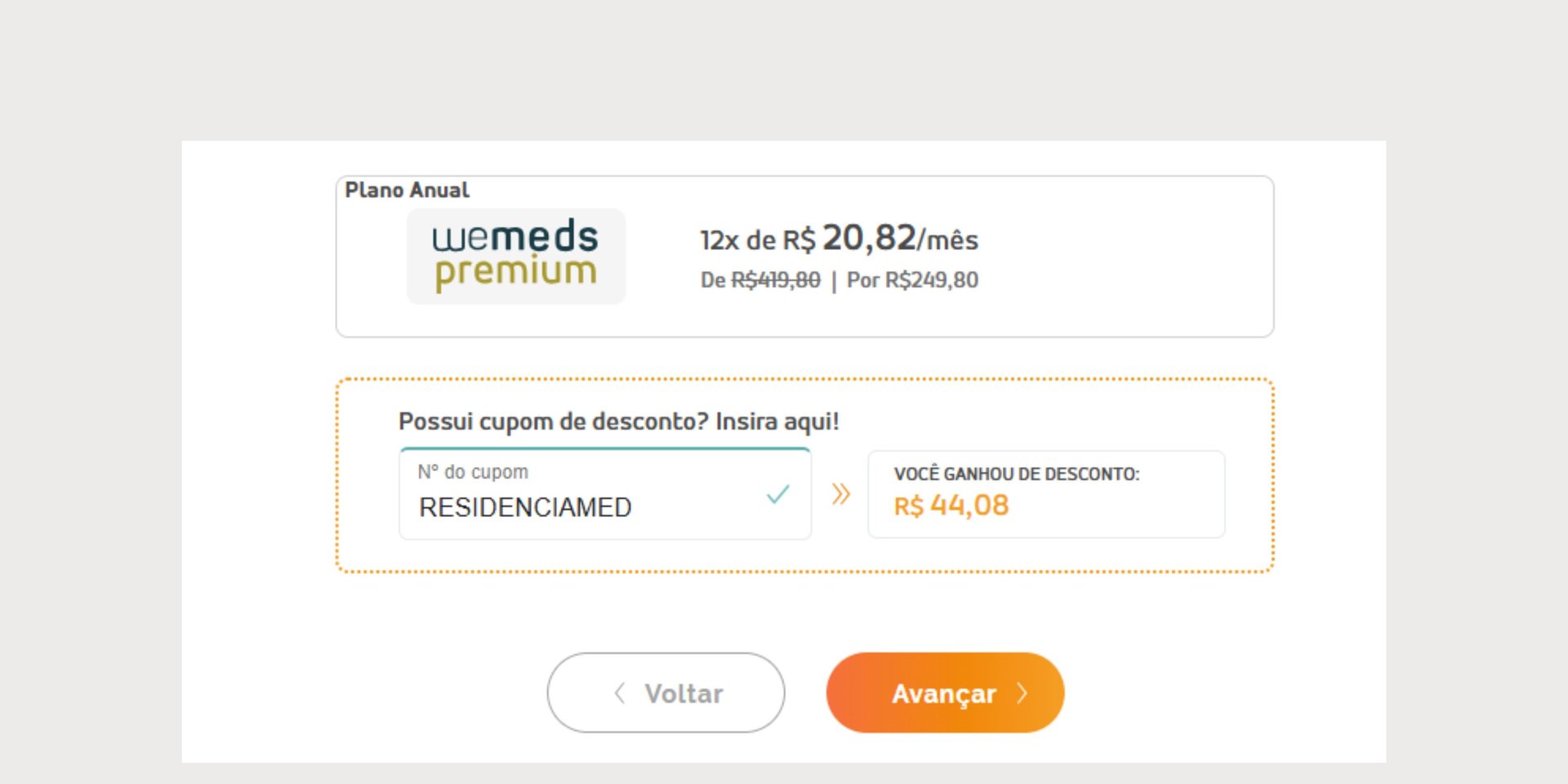 Utilize o cupom "RESIDENCIAMED" e ganhe 15% de desconto na sua assinatura WeMEDS Premium